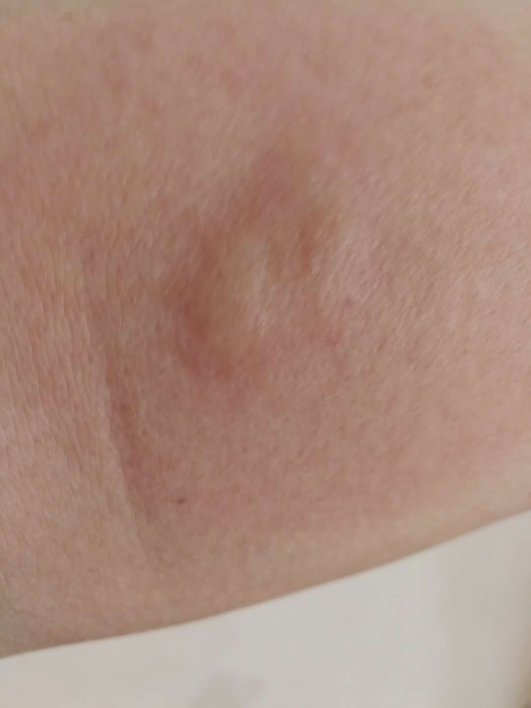 晚饭后,我洗过澡,坐在沙发上小憩一会儿,突然小手臂一阵刺痛,转眼望去,没有发现什么东西咬的!手臂上有相距很近的两个小扁皮疙瘩,把睡衣脱下来,搜索了一番,又把房间灯全打开,找寻很长时间,也没有找到凶手,只是感觉叮咬的圪塔越来越痛!赶紧拿来清凉油擦一擦!
